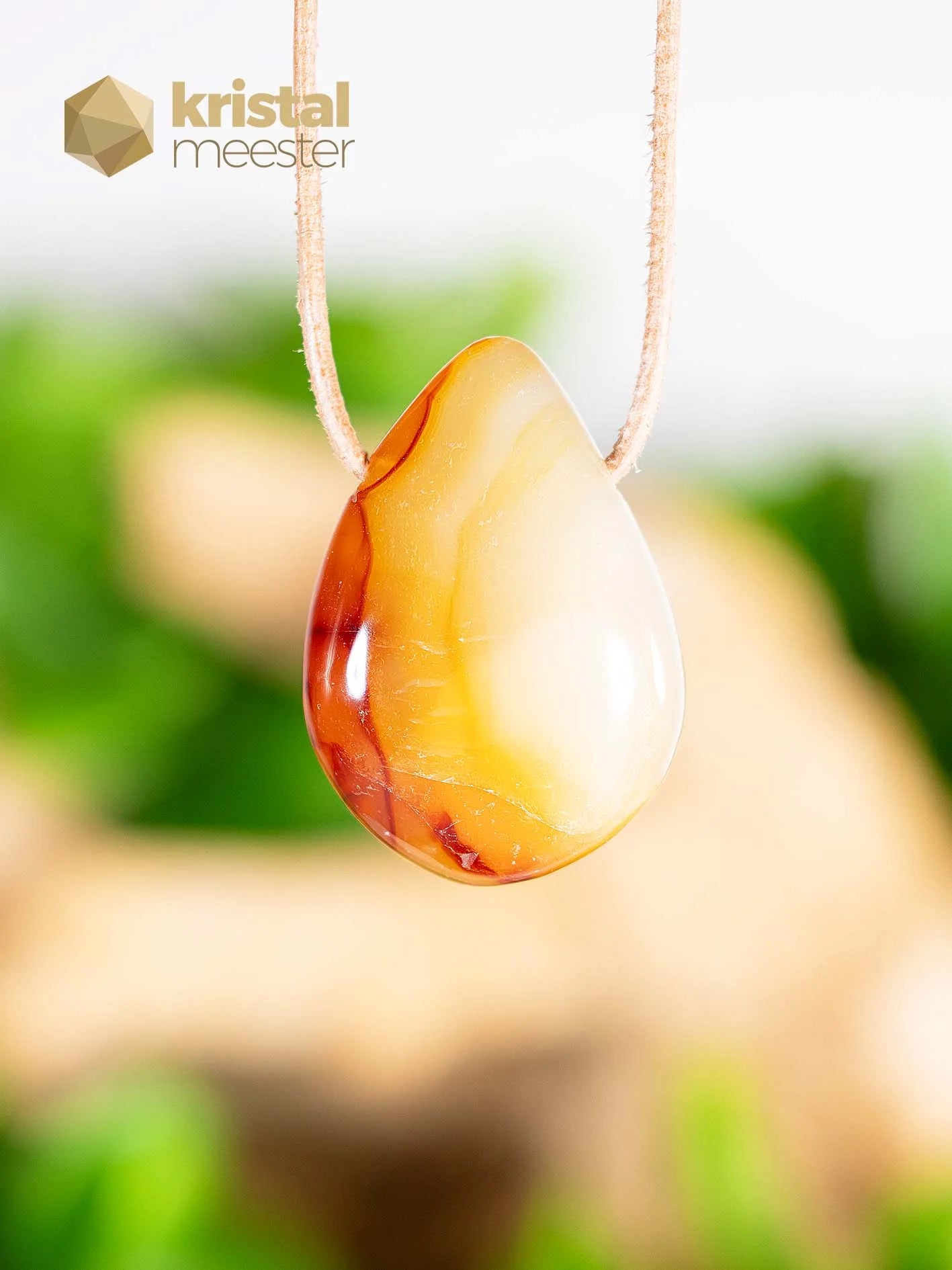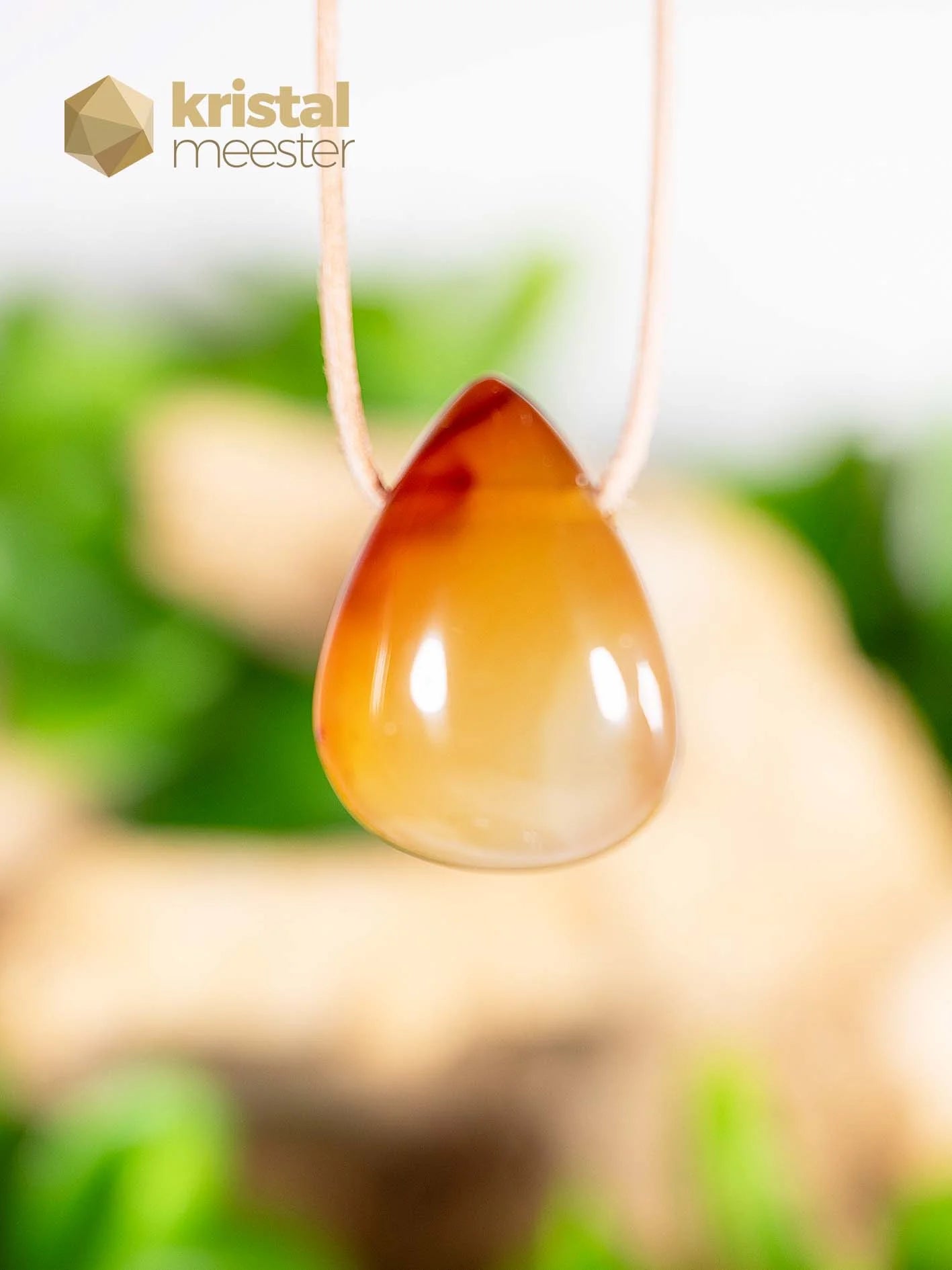 Mooie Carneool hanger, doorboord. Carneool bevordert de opname van vitamines, mineralen en andere voedingsstoffen. Vermindert depressieve gevoelens en helpt onder andere bij vermoeidheidsklachten. Lees meer