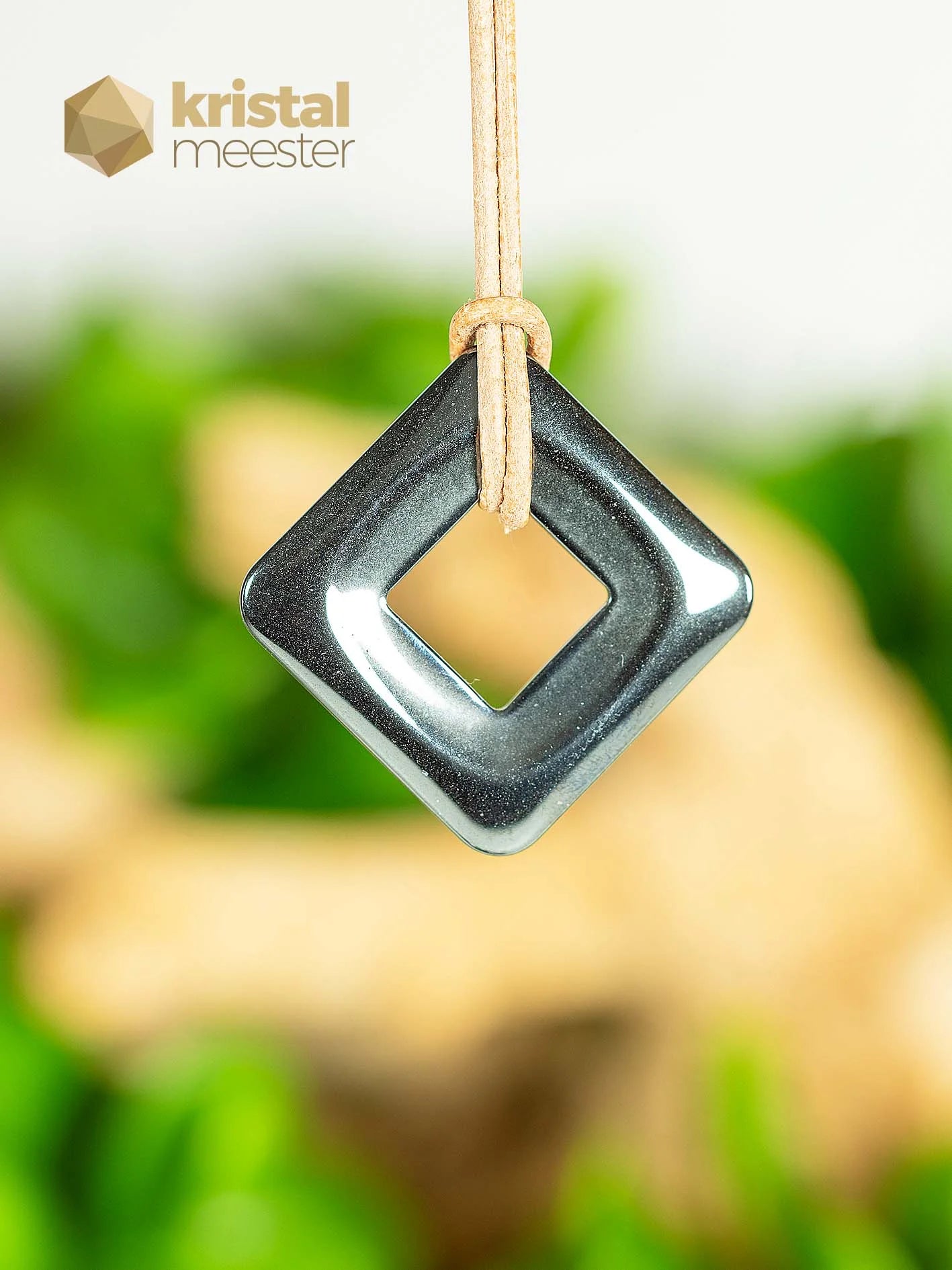 Prachtige Hematiet donut, vierkant - 28 mm. Hematiet is een sterk aardende en beschermende steen. Geeft zelfvertrouwen en helpt met het doorbreken van oude schadelijke gedragspatronen. Maakt je bewust van wat je nodig hebt. Lees meer