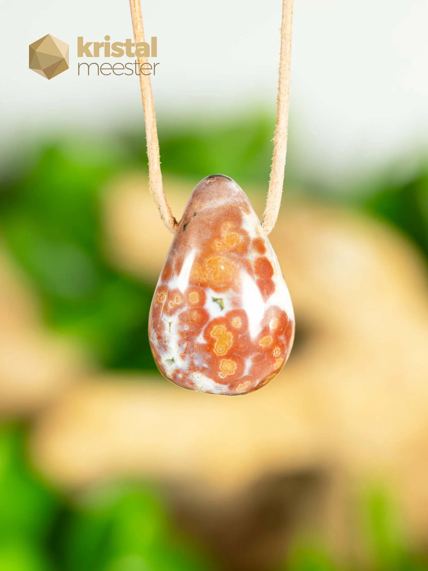 Oceaan Jaspis is ondanks zijn naam een steen die thuis hoort bij het element aarde. Oceaan Jaspis komt voor in vele verschillende bonte kleuren en bestaat vaak uit vele kleine celletjes. Oceaan Jaspis wordt ook wel eens orbiculaire Jaspis genoemd en is een steen die lichamelijke en energetische stukken op celniveau heelt. Oceaan Jaspis herstelt lichaamsweefsel en brengt onder andere het endocriene stelsel in evenwicht. Is een fijne steen om de nieren en bijnieren te stabiliseren en heeft een positieve invloed op de werking van de schildklier.