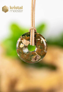 Mooie Bloem Rhyoliet donut met een doorsnede van 30 mm. Is een sterk aardende steen en ondersteunt in turbulente tijden. Nodigt je uit in het hier en nu om de juiste stappen te zetten in het leven. Geeft zelfvertrouwen en versterkt het immuunsysteem. Lees meer