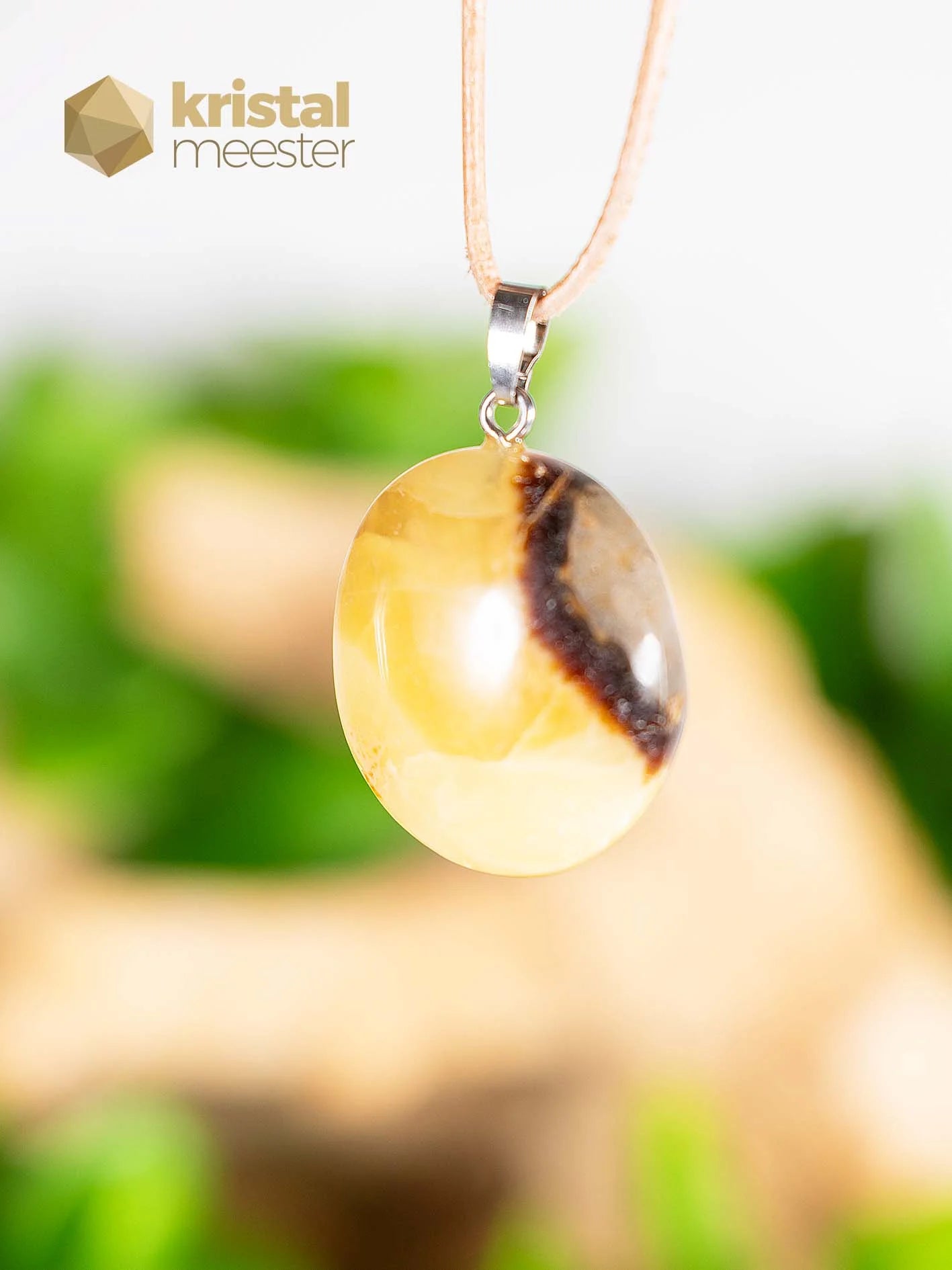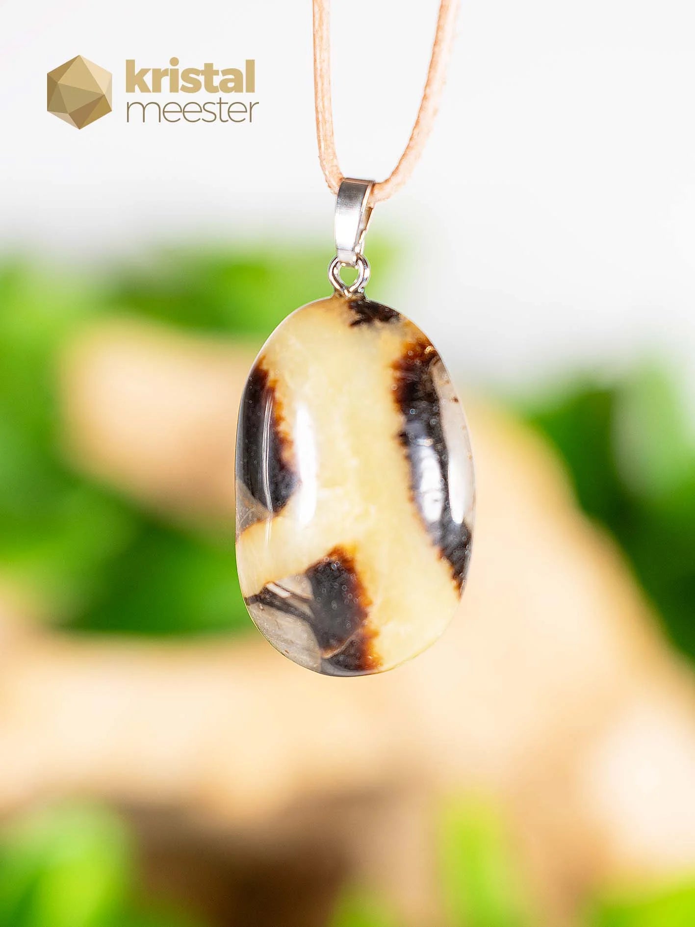 Mooie Septarie hanger met zilver oog. Septarie is een aardende, zuiverende en kalmerende steen die het zelfgenezend vermogen van het lichaam stimuleert en helpt om je gevoel te openen en daarop te vertrouwen. Lees meer