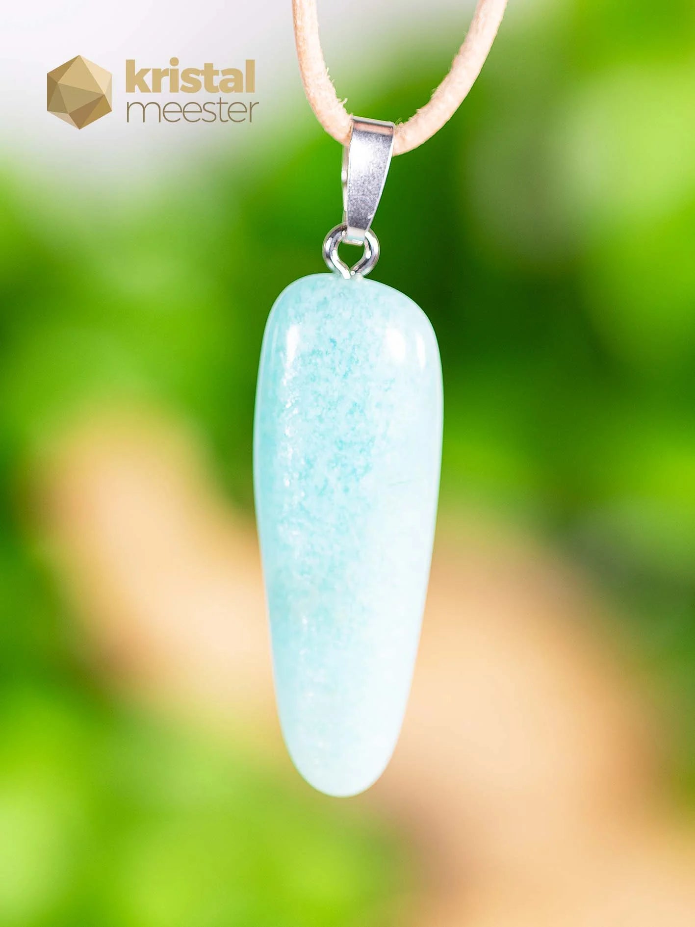 Beautiful Amazonite EX pendant with silver loop. EX stands for extra quality. Amazonite is a fine protective stone and blocks electromagnetic radiation, among other things. A fine stone that supports high sensitive persons. Read more