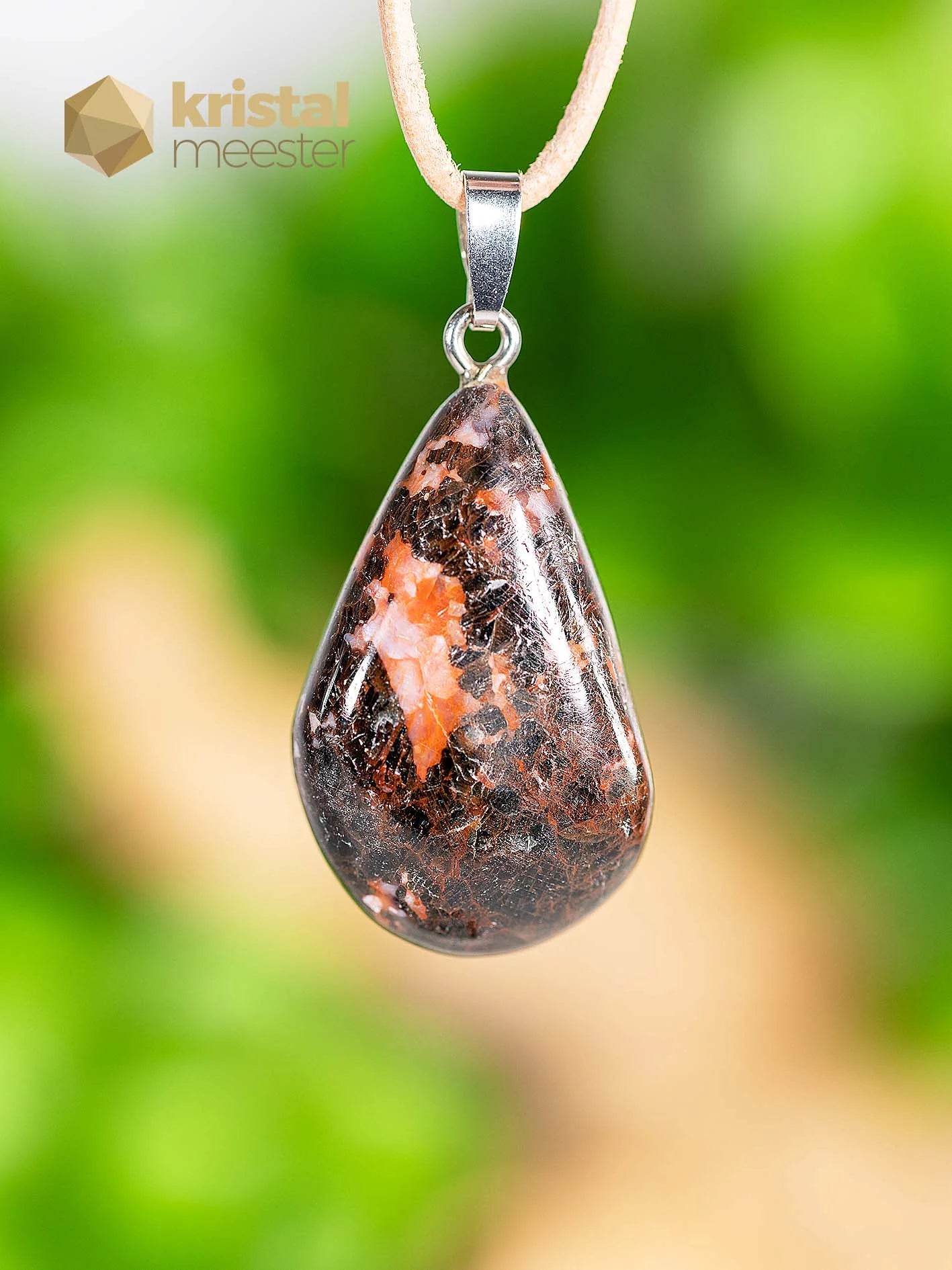 Amphibolite is a robust and earthy stone that symbolizes strength, balance, and protection. This remarkable gemstone is composed of a combination of different minerals, mainly amphiboles (such as Hornblende) and Plagioclase, which give it a deep, dark appearance with glossy inclusions of green, red, black, or gray. Amphibolite is a metamorphic rock formed under high pressure and temperature, literally carrying within it the energy of transformation.