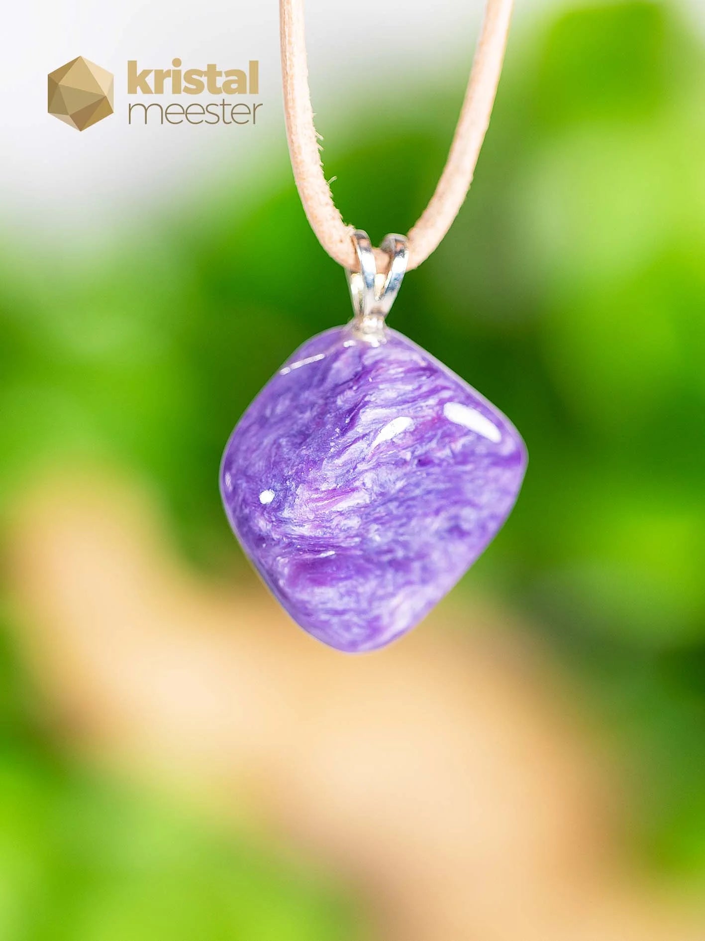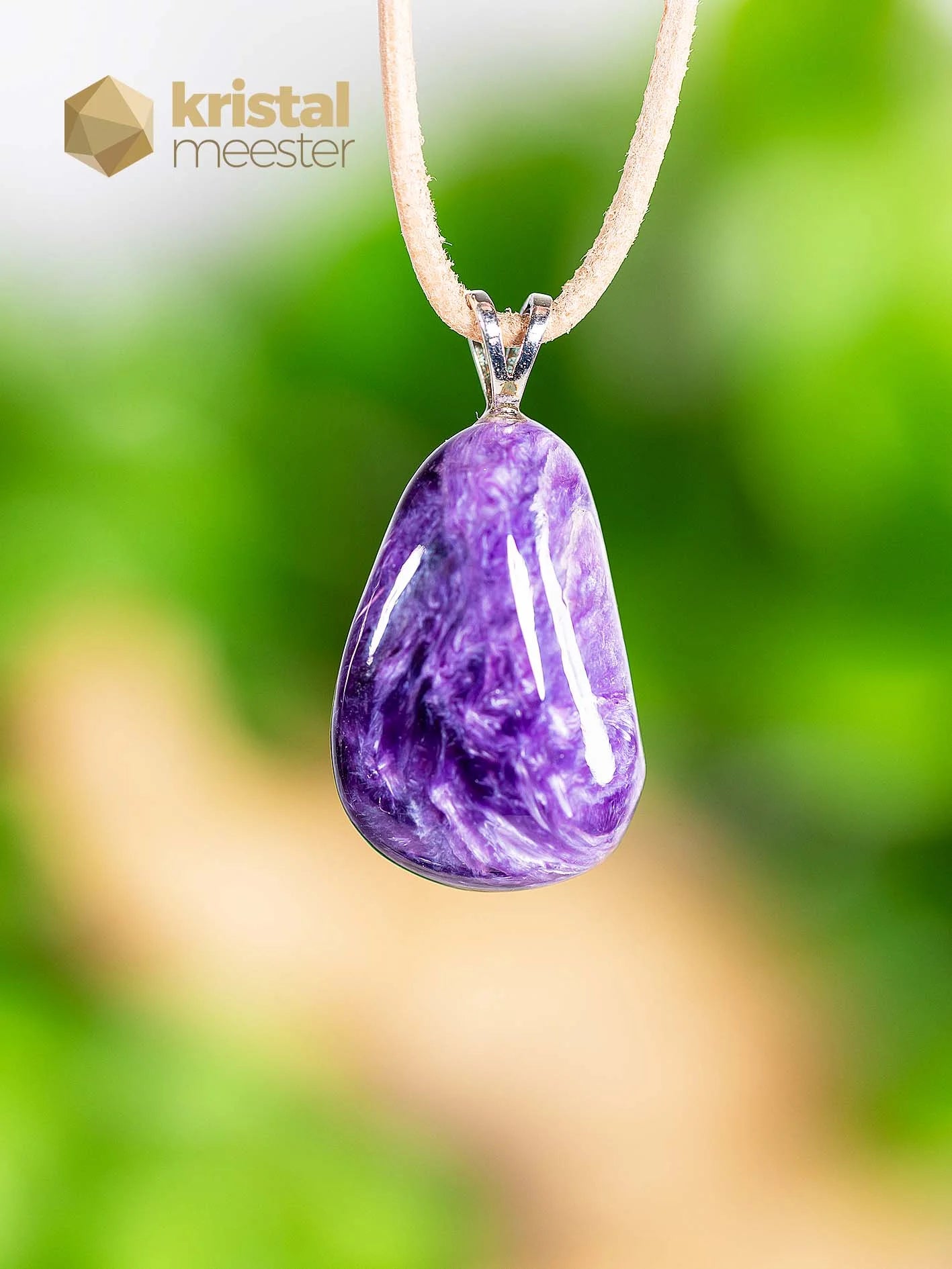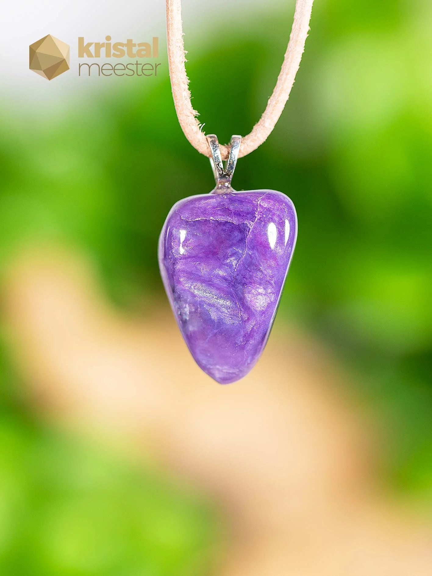 Beautiful Charoite EX pendant with a 925 Sterling silver loop. EX stands for extra quality. Charoite is a spiritual and powerful energetic stone. Gives insight into what your task here on earth is. Relaxes and makes you insensitive to stress. Read more