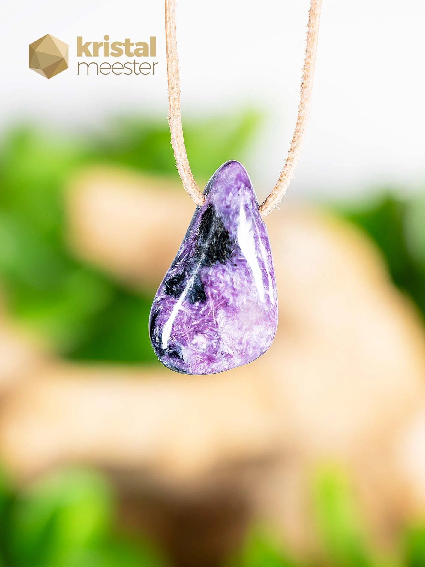 Beautiful Charoite EX pendant drilled. EX stands for extra quality. Charoite is a spiritual and powerful energetic stone. Gives insight into what your task here on earth is. Relaxes and makes you insensitive to stress. Read more