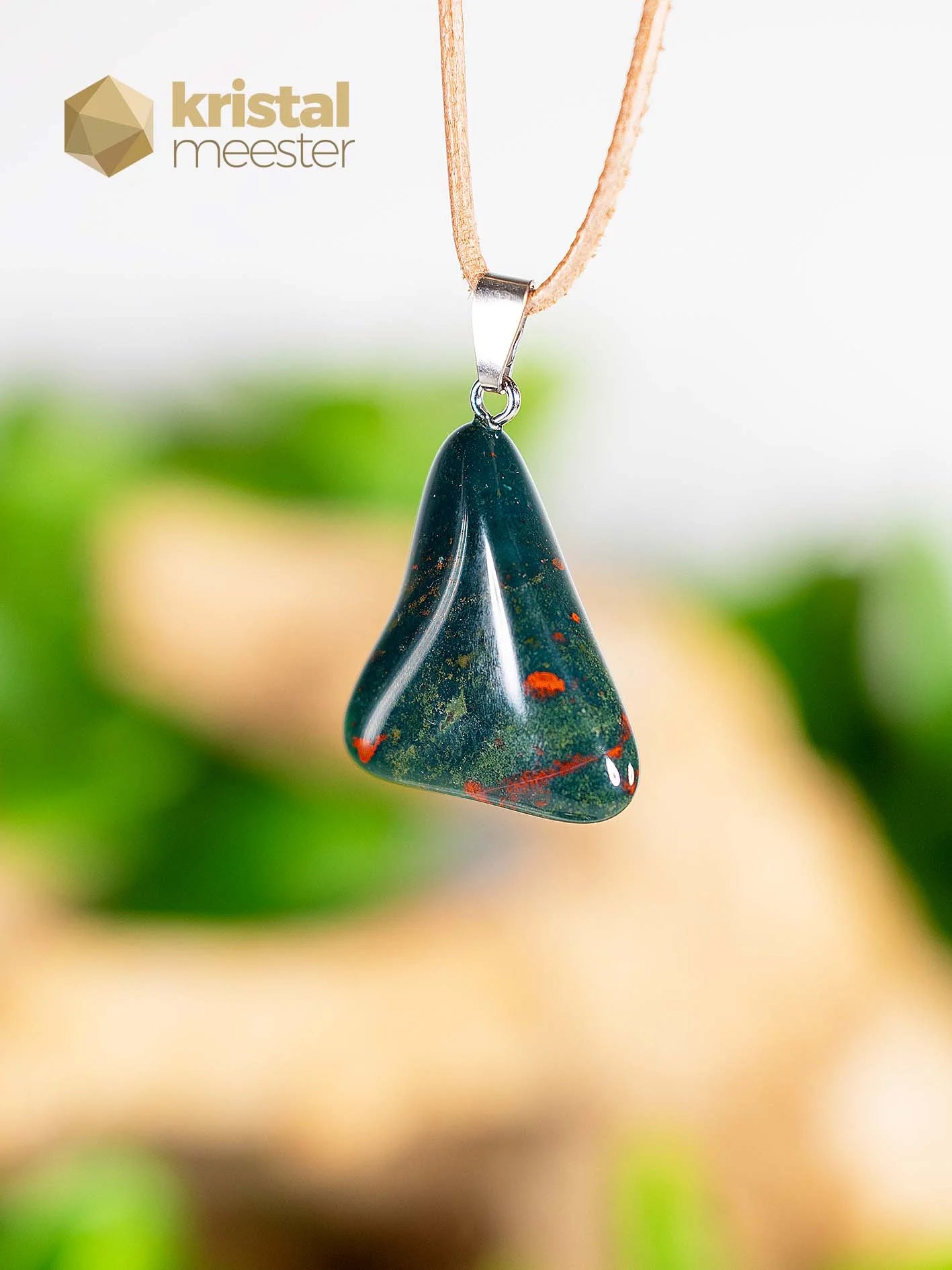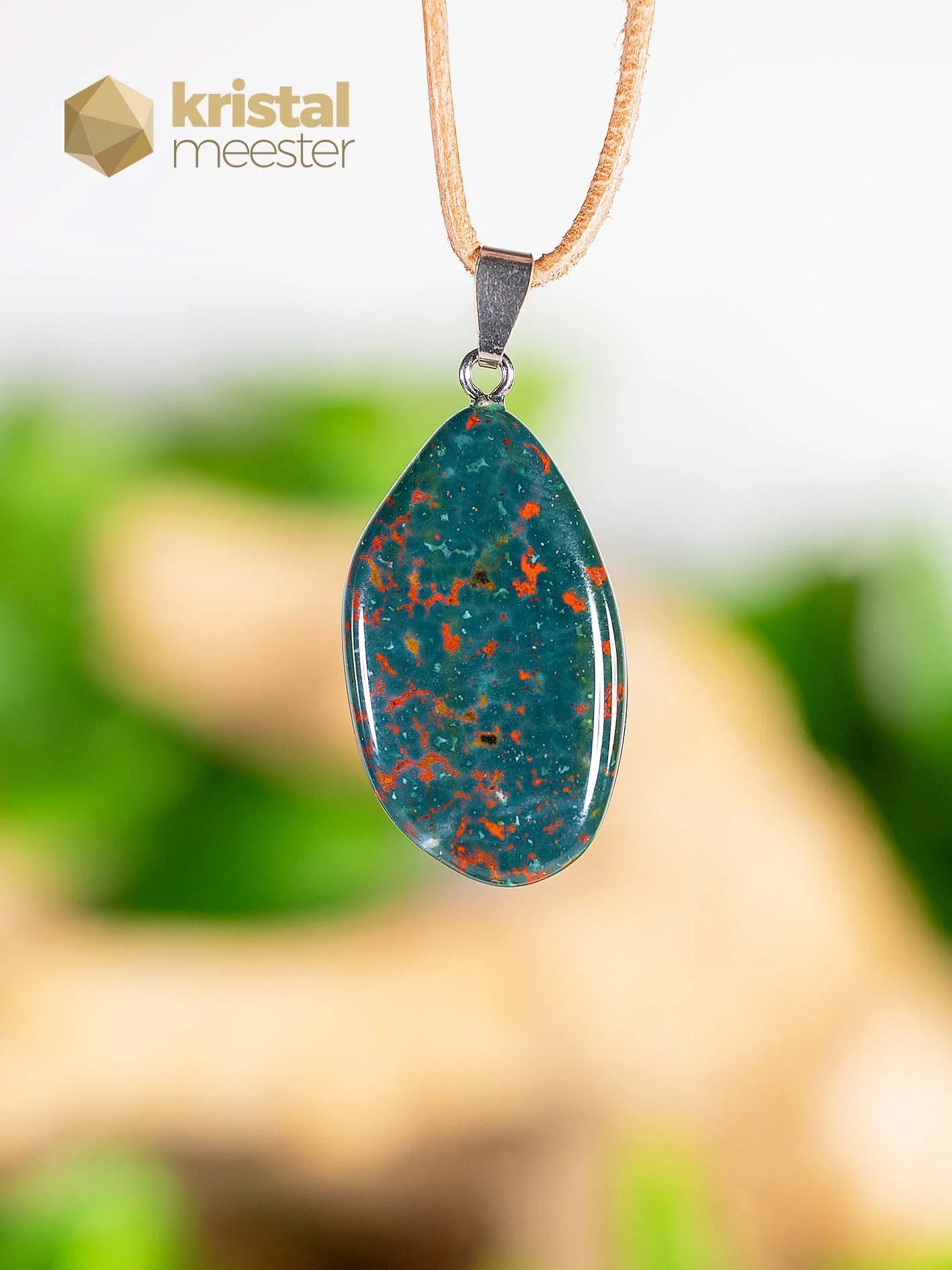 Beautiful Heliotrope EX pendant with a silver loop. EX stands for extra quality. Heliotrope is a fine protective and grounding stone. Supports with extreme fatigue. Has a calming effect and teaches to express your boundaries. Read more