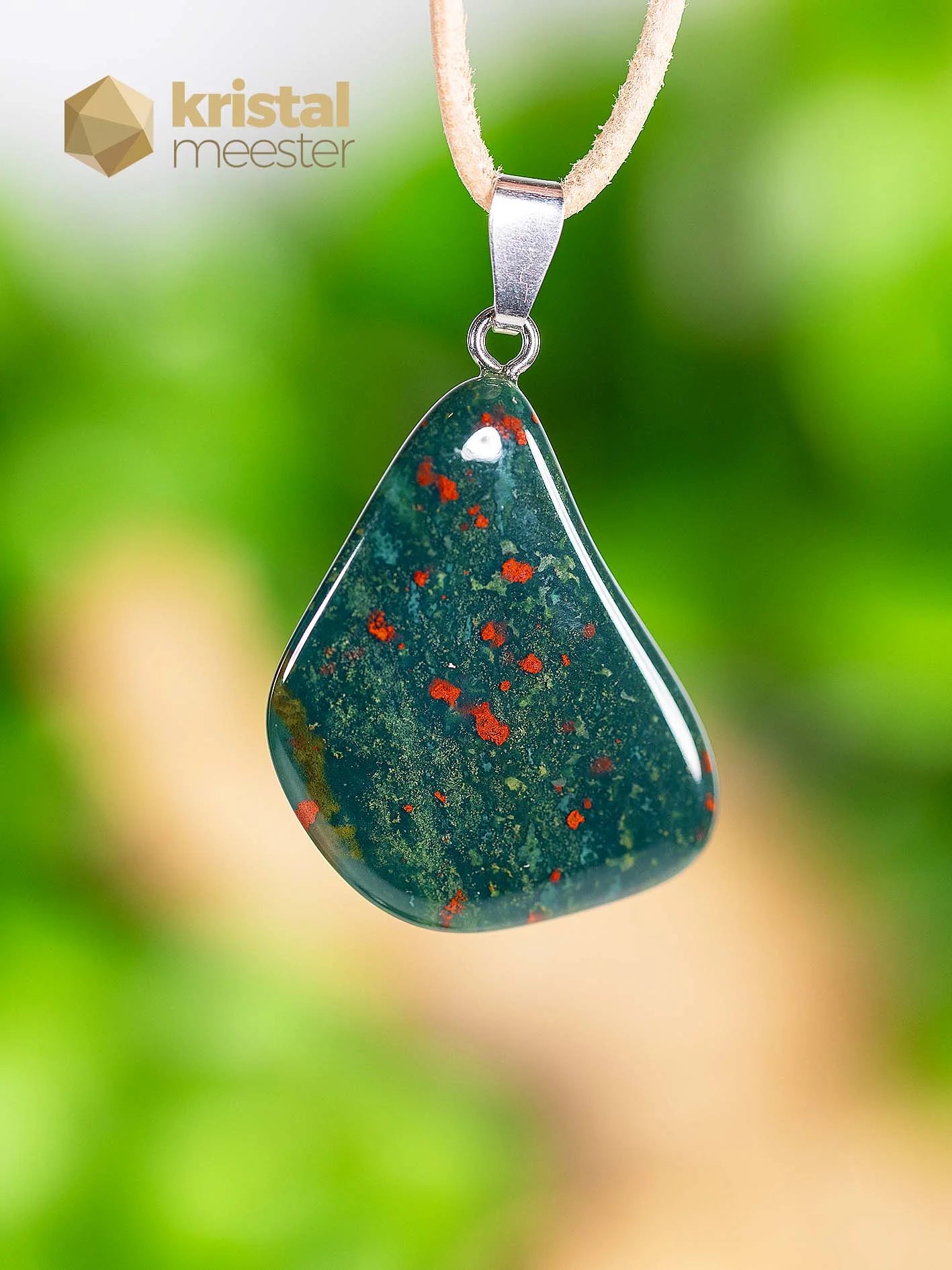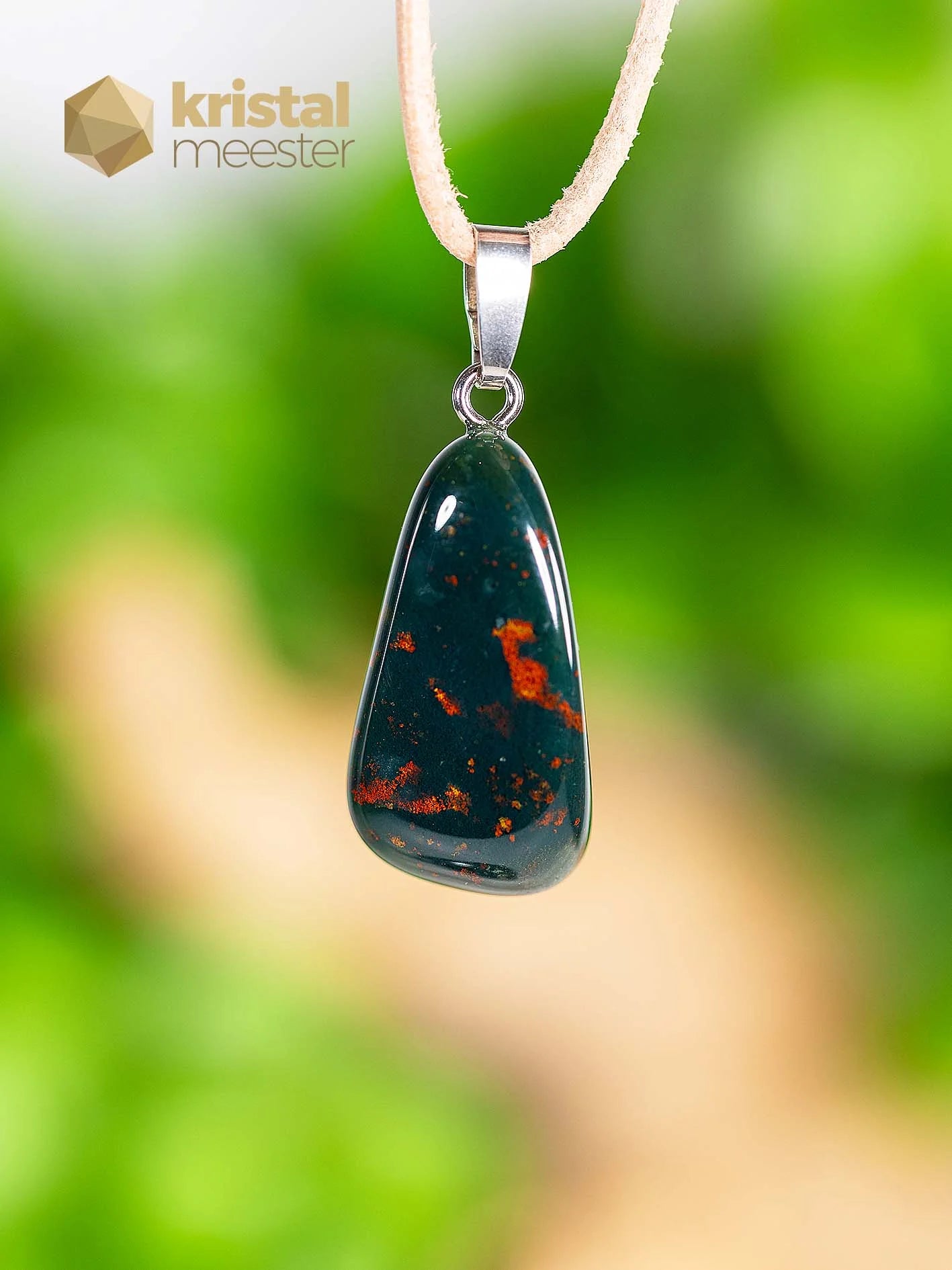 Beautiful Heliotrope EX pendant with a silver loop. EX stands for extra quality. Heliotrope is a fine protective and grounding stone. Supports with extreme fatigue. Has a calming effect and teaches to express your boundaries. Read more