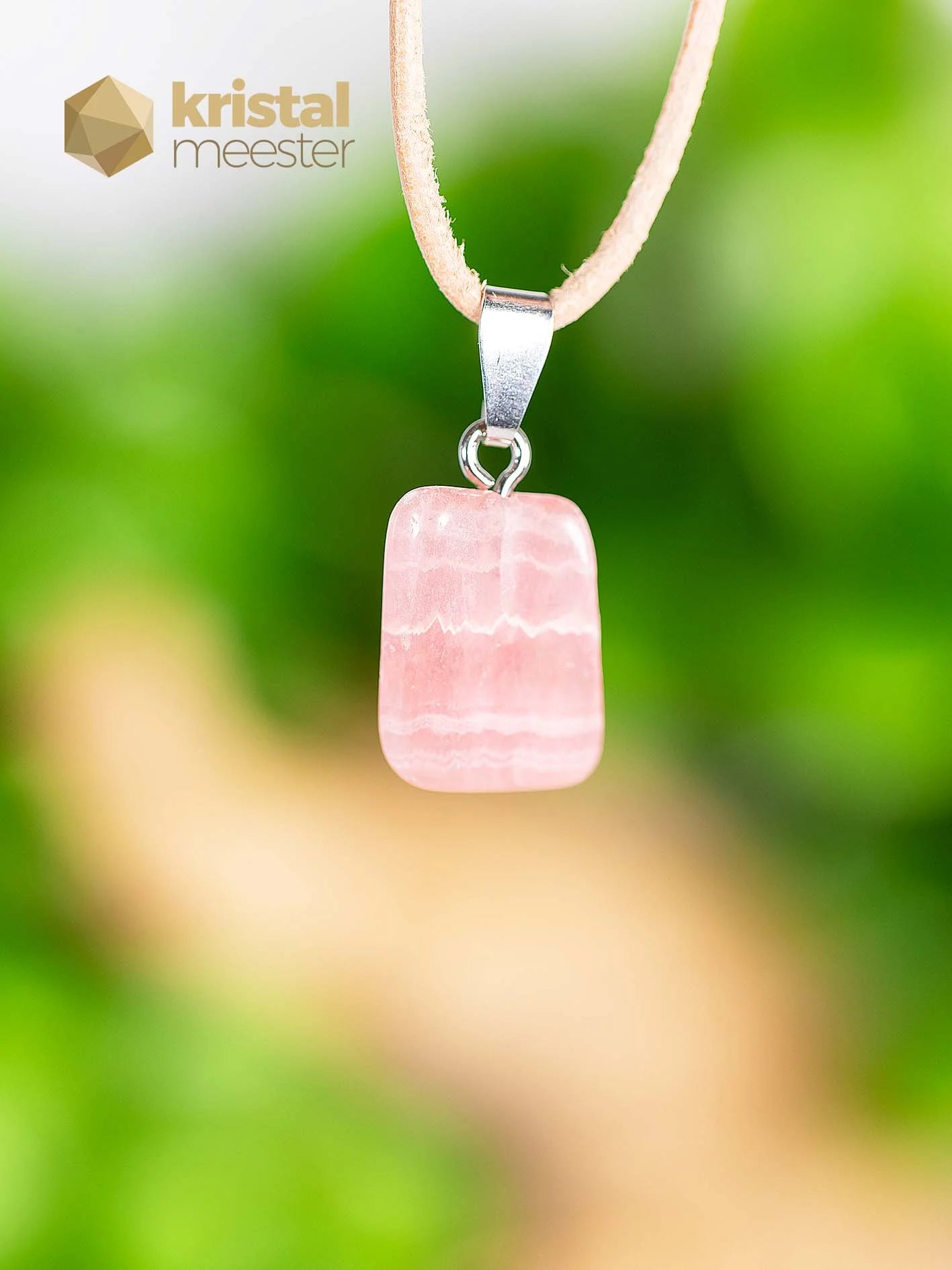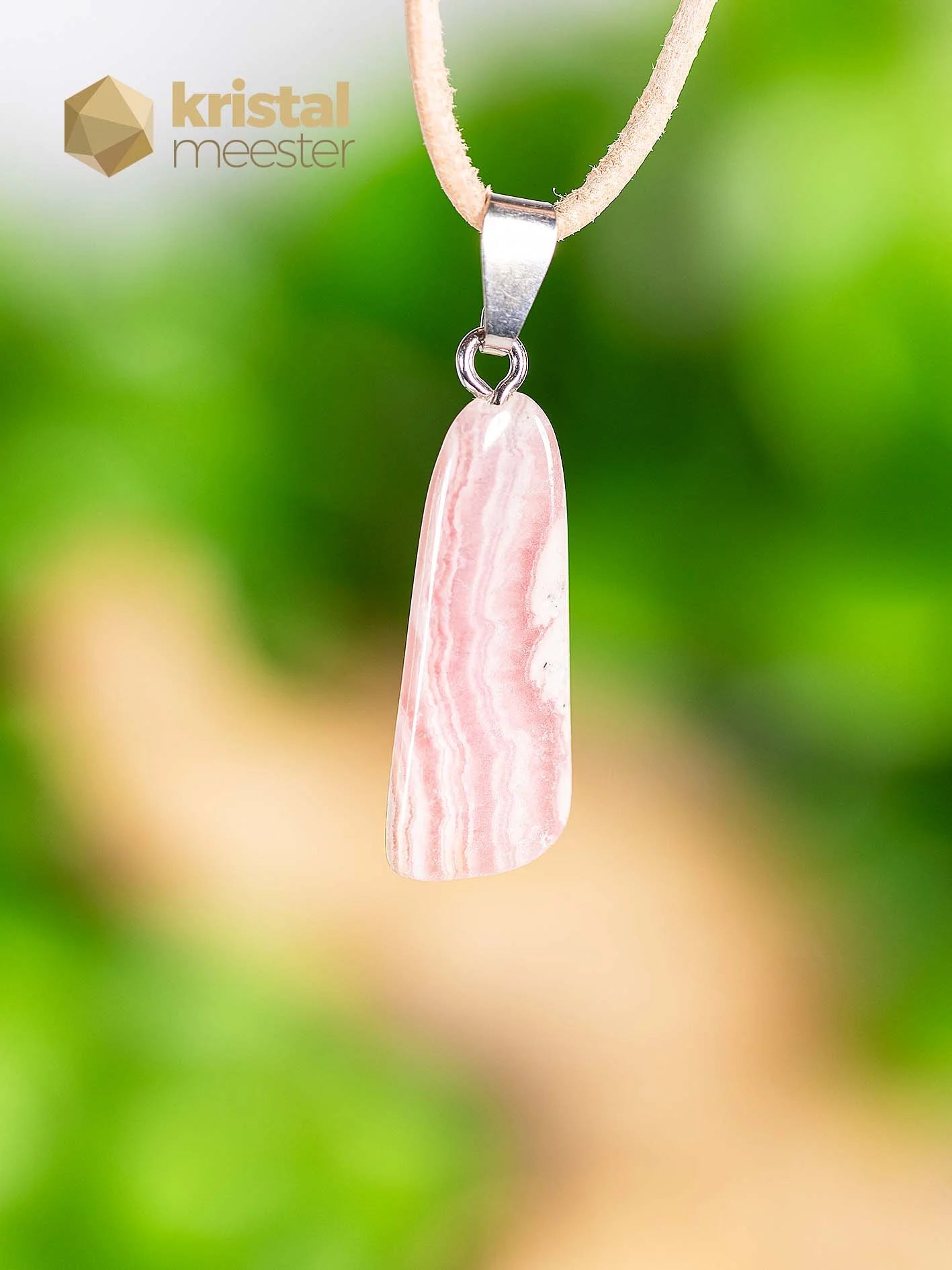 Beautiful Rhodochrosite EX pendant with silver loop. EX stands for extra quality. Rhodochrosite is a strong healing stone that works on the Heart Chakra, among other things. Brings harmony and gentleness and helps you to open up to love. Read more