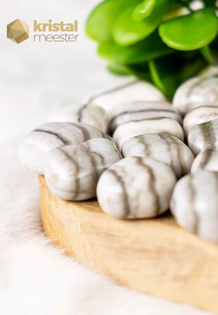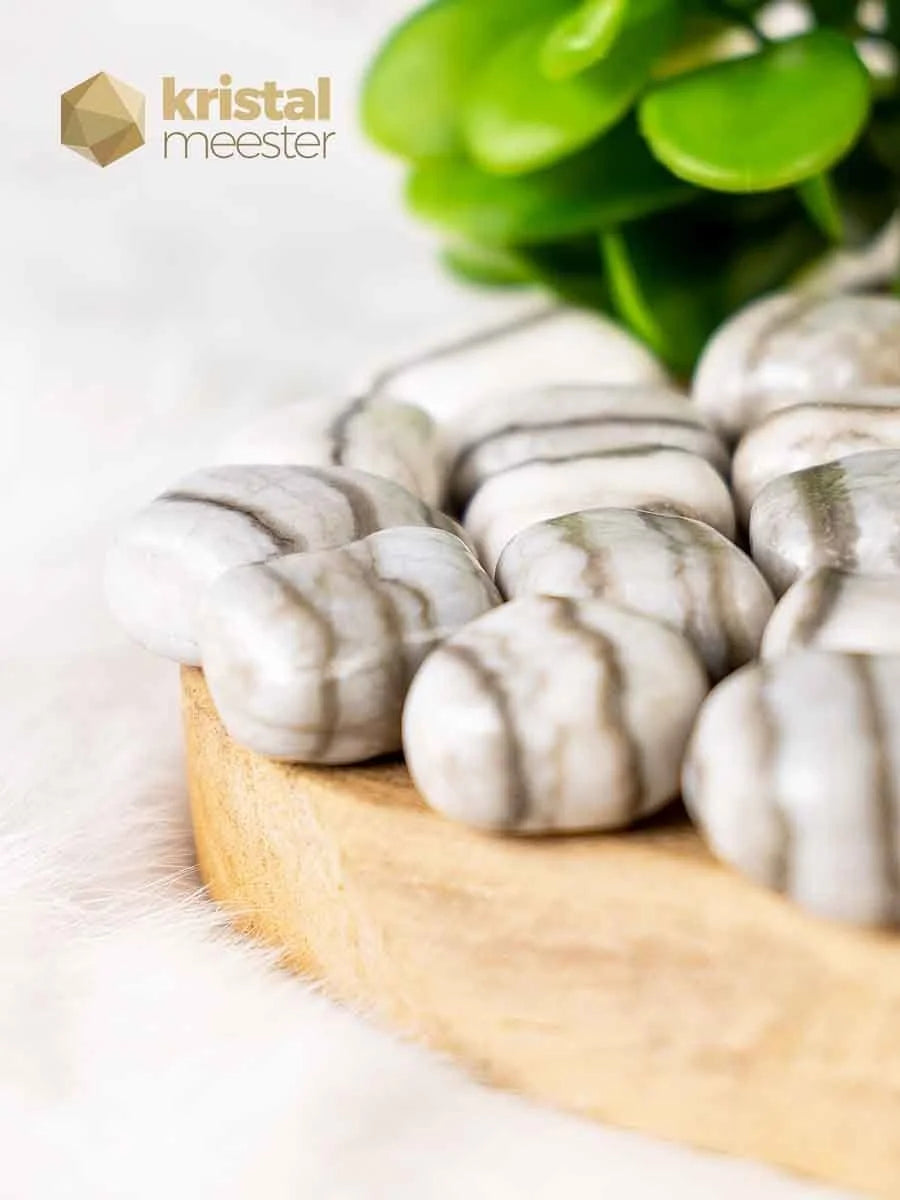 These beautiful white Anhydrite tumbled stones are also called Wellen Anhydrite. Brings you in touch with yourself and back to your feelings. Helps you find your spiritual gifts and puts you on your own path. Sold by the piece.