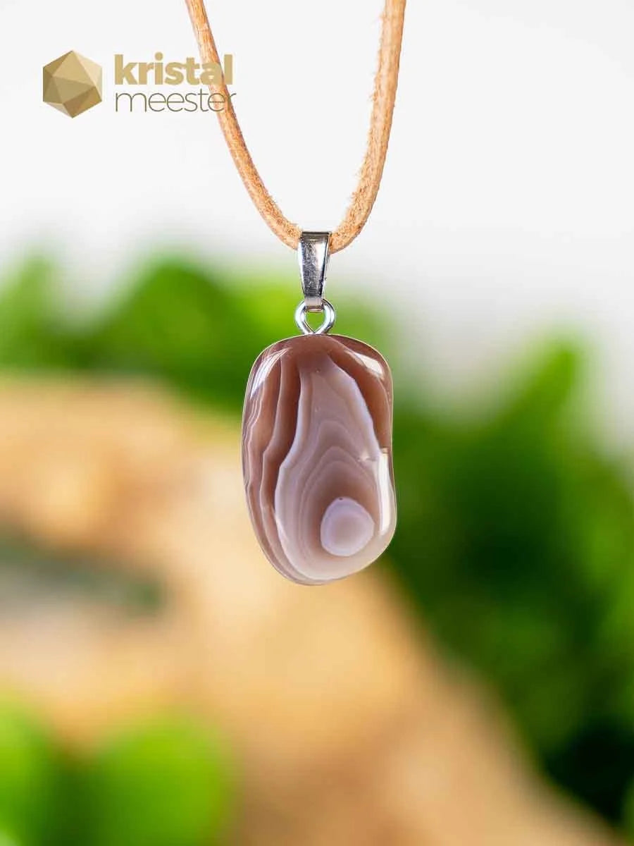 Beautiful Botswana Agate EX pendant with 925 Sterling silver eye. EX stands for extra quality. Has a fine comforting energy and supports with emotional pains and loneliness. Encourages you to let go of your fears.