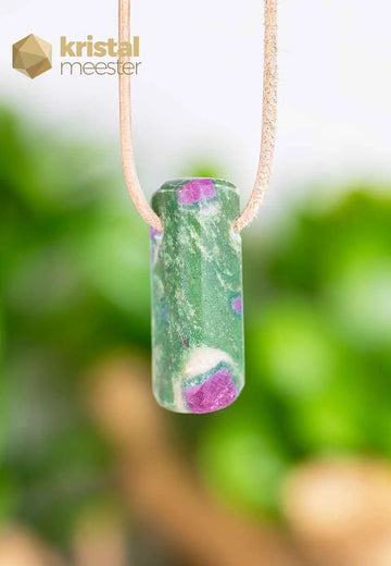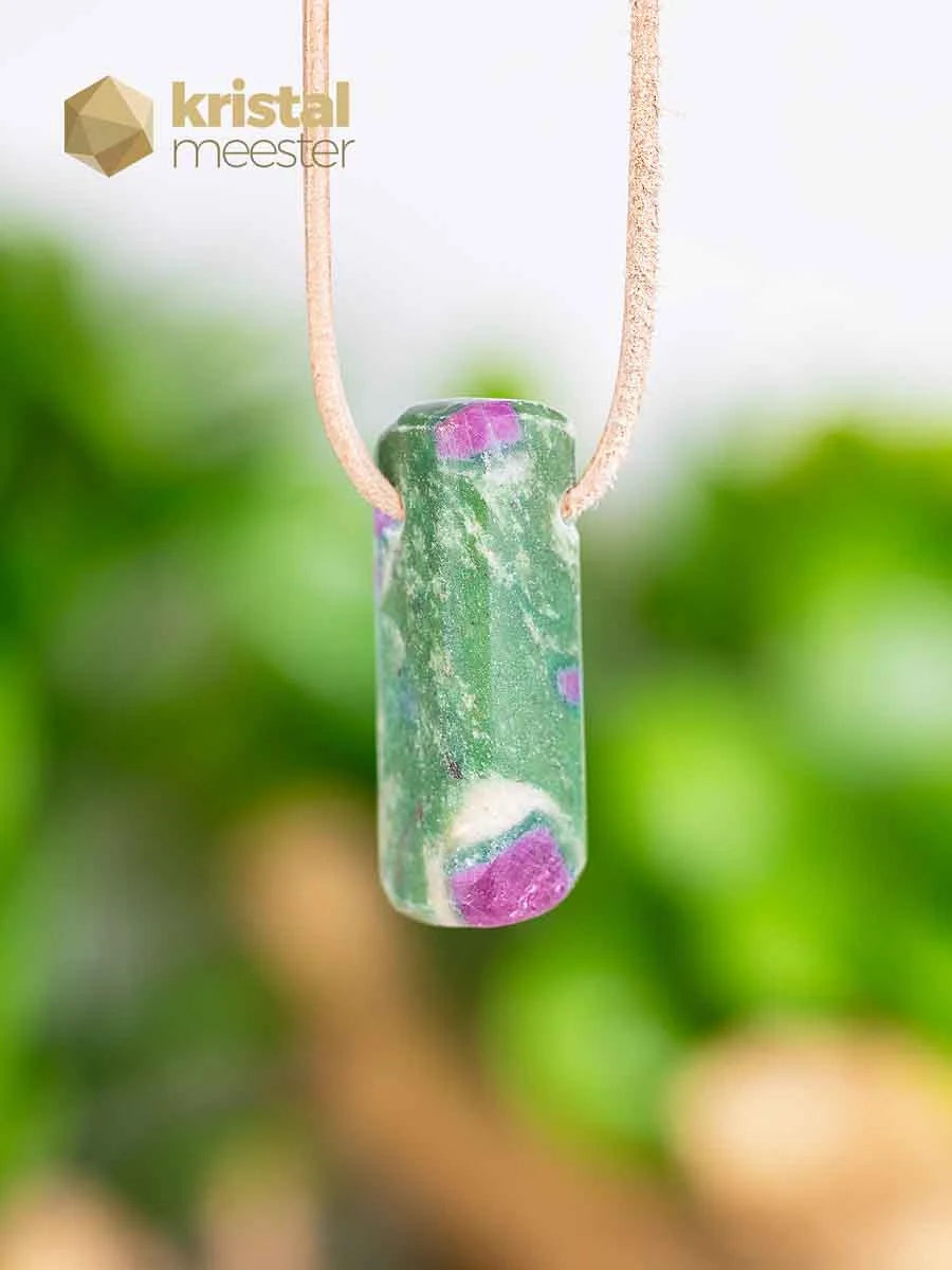 Beautiful Ruby in Fuchsite pendant, drilled. Ruby in Fuchsite is an interesting combination stone that gives energy and strength but also provides relaxation and beautiful insights.
