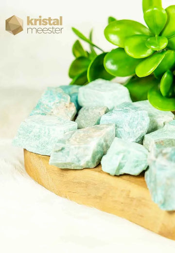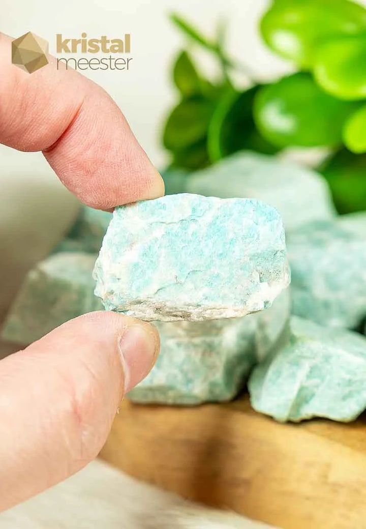 Mooie ruwe Amazoniet stenen uit Brazilie. Een echte beschermsteen en heel fijn voor hooggevoelige mensen. Amazoniet brengt verstand en gevoel weer in harmonie samen.