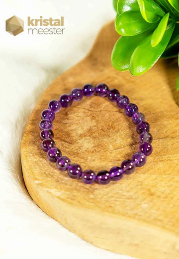 Prachtige Amethist Kogelarmband met een doorsnede van 8mm. EX staat voor extra kwaliteit. Heerlijk om de energie van edelstenen direct op de huid te voelen. Amethist heeft een prachtige diep spirituele energie en is een sterk helende steen.
