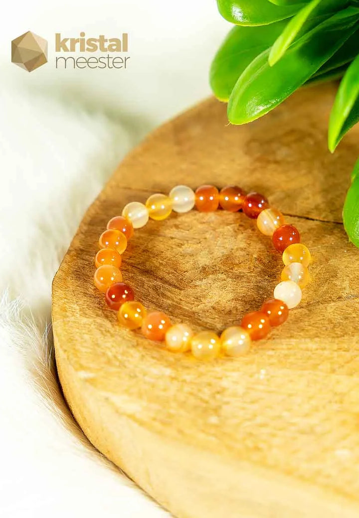Prachtige Carneool Kinderarmband met diameter van 6 mm. Carneool bevordert de opname van vitamines, mineralen en andere voedingsstoffen. Vermindert depressieve gevoelens en helpt onder andere bij vermoeidheidsklachten.