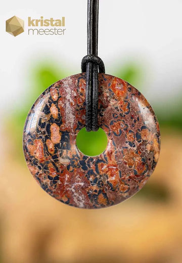 Mooie Luipaard Jaspis donut met een doorsnede van 40 mm. Een sterk aardende steen die je met twee voeten op de grond zet en contact laat maken met je innerlijke stem. Maakt daadkrachtig om oude patronen te doorbreken.