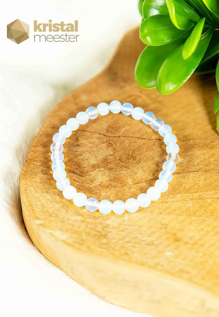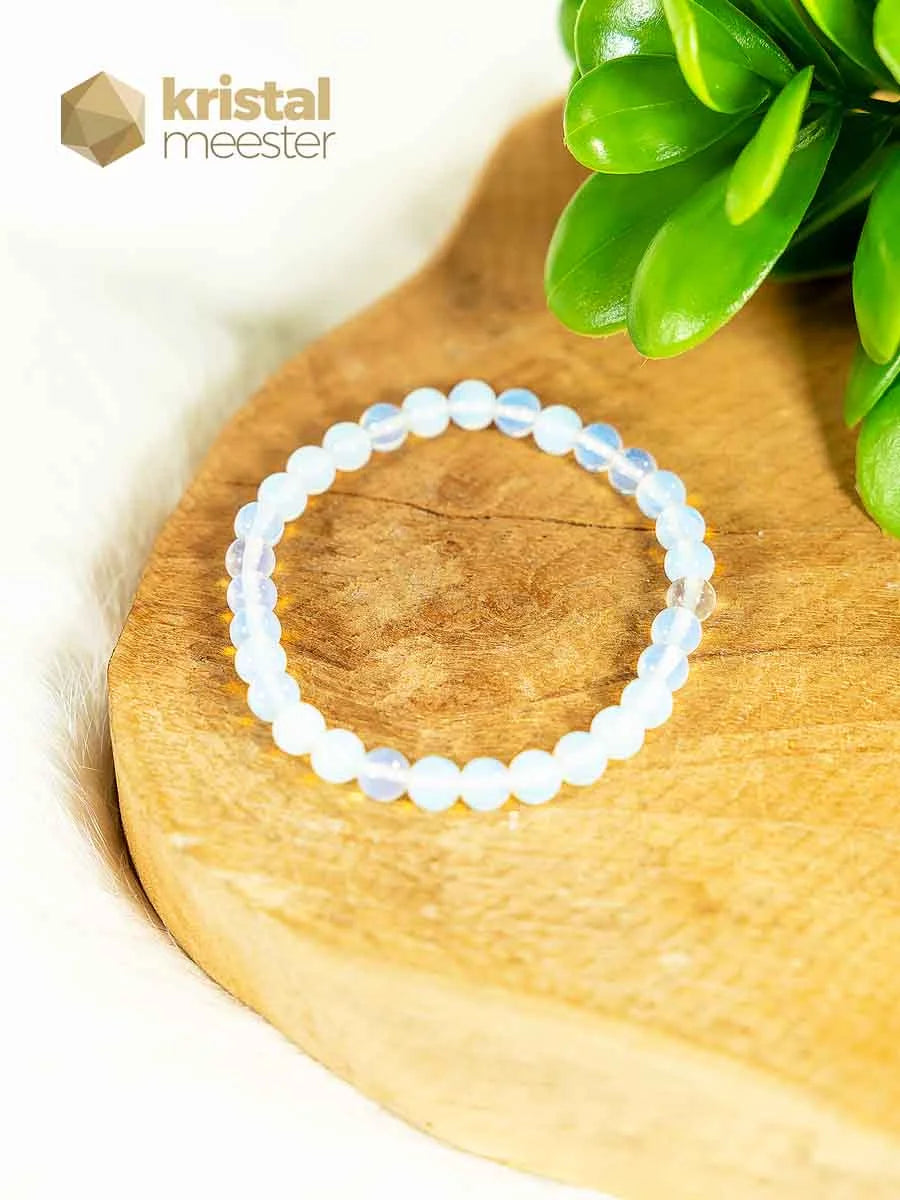 Prachtige Opaliet Kogelarmband met een doorsnede van 6 mm. Opaliet is een synthetisch glas en ondanks het feit dat Opaliet door de mens gemaakt is worden er toch een aantal fijne eigenschappen aan toegewezen.