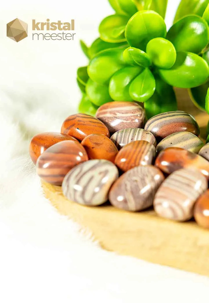 Mooie Printstone trommelstenen, maat M. Printstone is een aardende steen en geeft je kracht om het juiste te doen. Maakt je vastberaden en doelgericht. Geeft duidelijkheid en richting aan je leven.