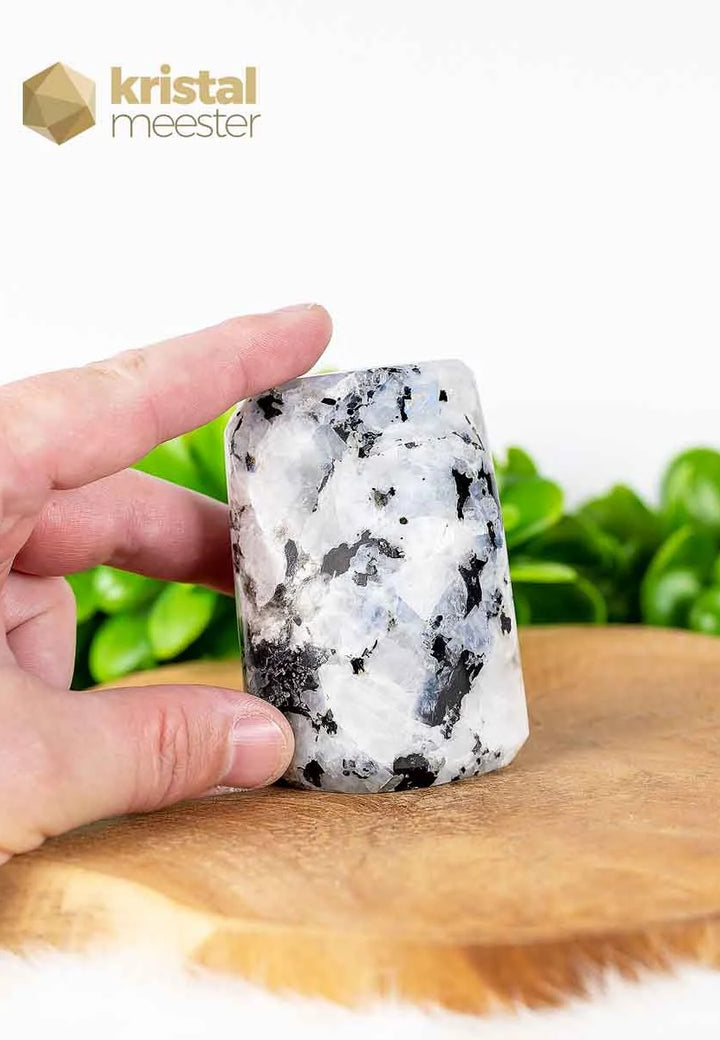 Mooie Regenboog Maansteen freeform. Een subtiele maar krachtige beschermsteen. Resoneert met de liefde en versterkt de vrouwelijke intuïtie. Regenboog Maansteen zet je in je kracht en ondersteunt je in periodes van transformatie.