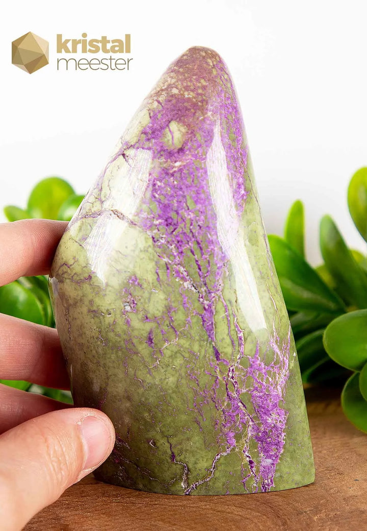 Mooie Stichtiet freeform. Heeft een fijne zachte kalmerende energie en brengt je in contact met je diep innerlijk weten. Helpt de Kundalini energie in je ontwaken en laat deze stromen. Zorgt ervoor dat je in het leven wat minder op de rem trapt.