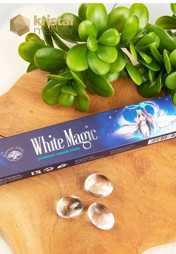 Heerlijke White Magic Wierook van Green Tree. Green Tree wierookstokjes zijn gemaakt van natuurlijke ingrediënten en met de hand gerold. De geur is gemaakt volgens traditioneel Indiaas recept en bevat kruiden, harsen, gommen, hout en olie.